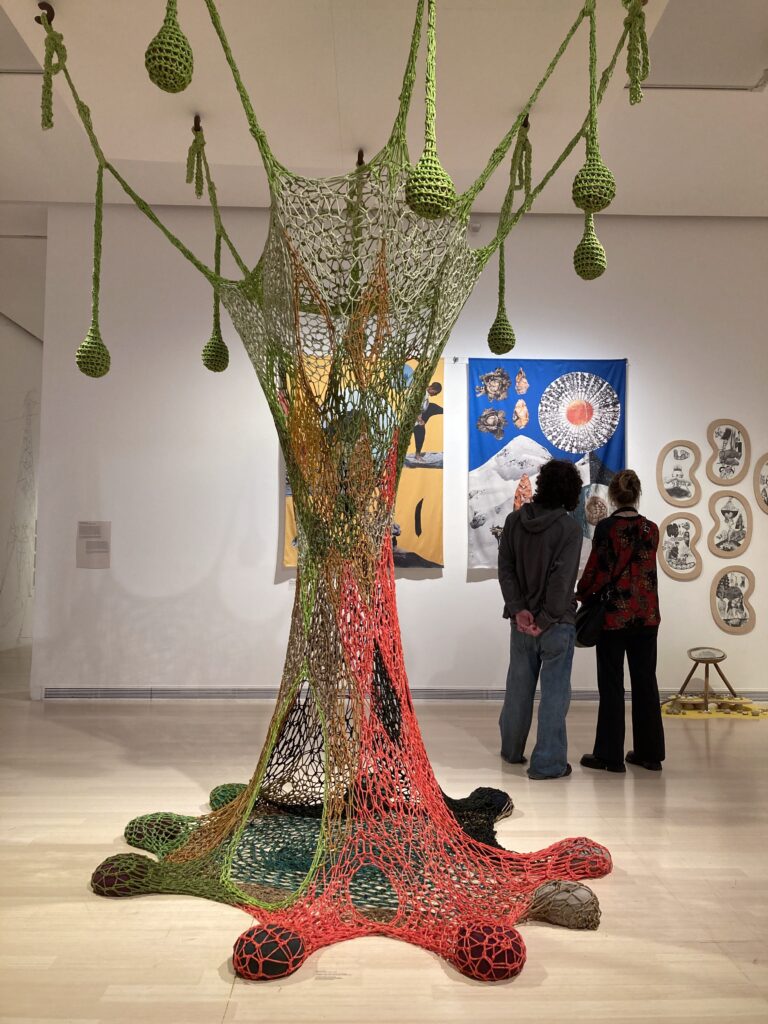 Kurátorok: Dabi-Farkas Rita, Popovics Viktória. A képek 2026. február 13-án készültek. A rajtuk szereplő művek: 1. Ernesto Neto: Yokume Entitree Alegria (2020), Szemző Zsófia: Leguminosae futurum, az örök alap (2025) és Magok rendje, ex situ megőrzés (2025), 2. a Ludwig Múzeum bejárata, 3. Fuzzy Earth: Szerencsétlen, de bátor fajok (2022), 4. Tárgyak a Skanzen – Szentendrei Szabadtéri Néprajzi Múzeum gyűjteményéből (Kötözött bögre, Sózóteknő, Tál), 5. Emília Rigová: A hely, ahol semmi nem nő többé (2025), 6. ismét Ernesto Neto: Yokume Entitree Alegria (2020), Szemző Zsófia: Leguminosae futurum, az örök alap (2025) és Magok rendje, ex situ megőrzés (2025). (És külön köszönet a Fővárosi Szabó Ervin Könyvtár budafoki tagkönyvtárában dolgozóknak, amiért zárás előtt belóghattam még egyszer csekkolni a Hrabal-idézetet.)